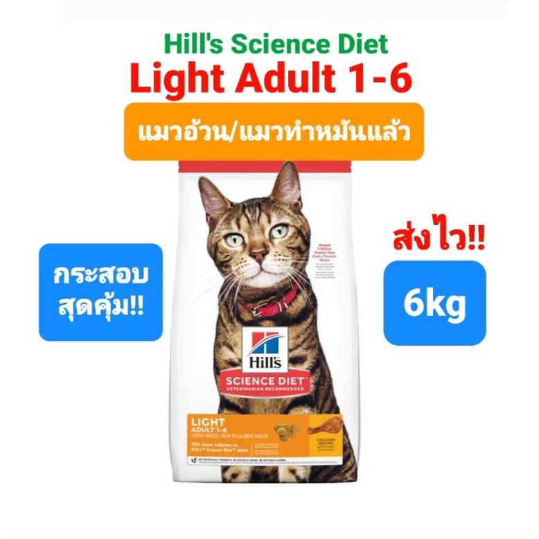 Hill S Adult 1 6 Light 6kg แมวอ วน แมวทำหม น อาย 1 6 ป ฮ ลส ส ตรไลท ค มน ำหน ก ขนาด 6 ก โลกร ม Shopee Thailand